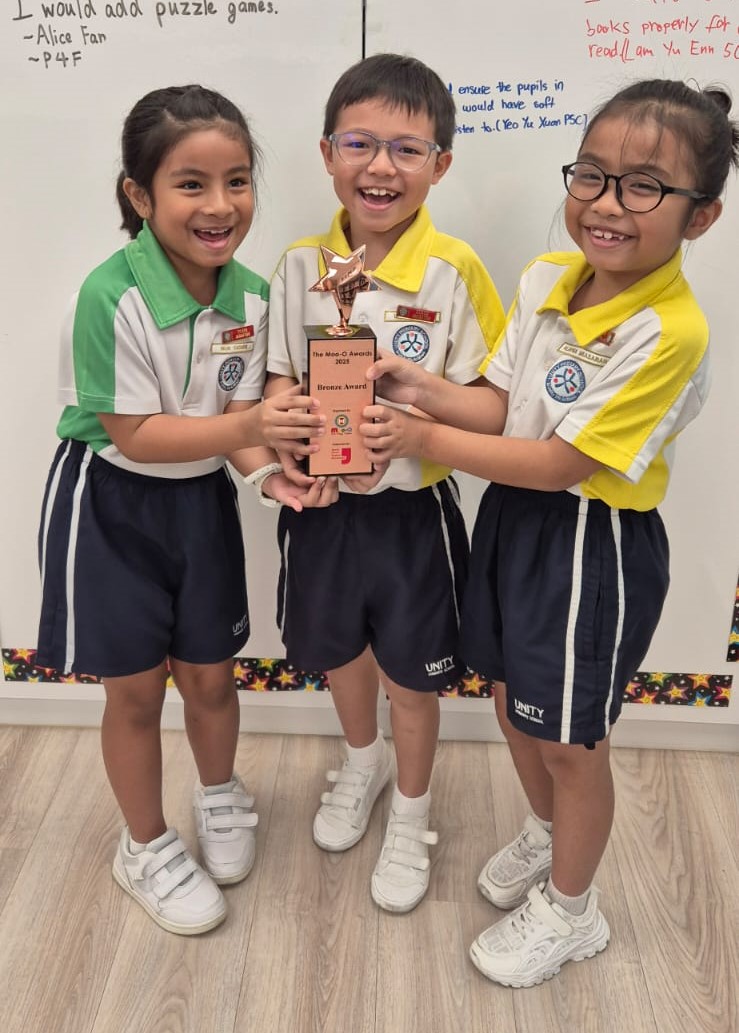 Alayna Miasarah Binte Muhammad Yusof (2B), Nur Yasmin Binte Mohammed Helmi (2D), and Lim Yu Chen (2E) did our school proud when they garnered a Bronze Award at the recent Moo-O Awards 2025! In preparation for the competition, the students dedicated many weeks to practising their pronunciation, intonation and expression. They also worked closely with their teacher and peers to refine their storytelling skills, demonstrating resilience and a positive learning attitude throughout the process.